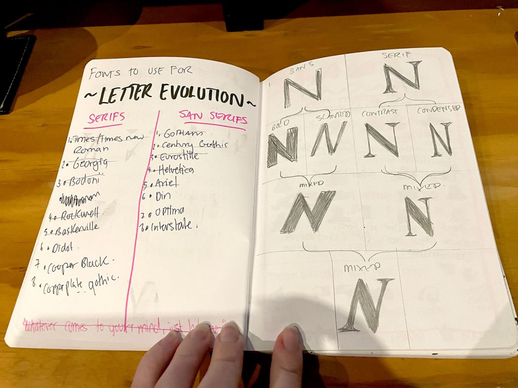 While there were several script lettering speakers at the summit, Thomas Hoyer and Maria Montes’ talks particularly resonated. Hoyer’s talk focused around flourishes, the lines and loops and angles, which paired nicely with the “Principles of Script Lettering” introduction from Montes. I got to pull out a few different pen types and play around in these notebooks, before throwing down pencils for another practice piece to call this skill check-in complete.